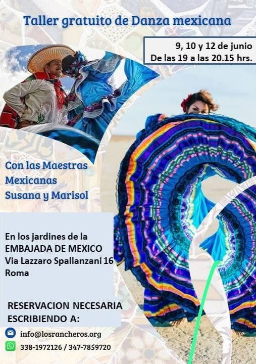 La tradición, el ritmo y el color de México se harán sentir este junio en el corazón de Roma. La Embajada de México en Italia invita a toda la comunidad a participar en un taller gratuito de danza folklórica mexicana, abierto al público y dirigido por las reconocidas maestras Susana y Marisol, fundadoras del histórico Ballet Los Rancheros.